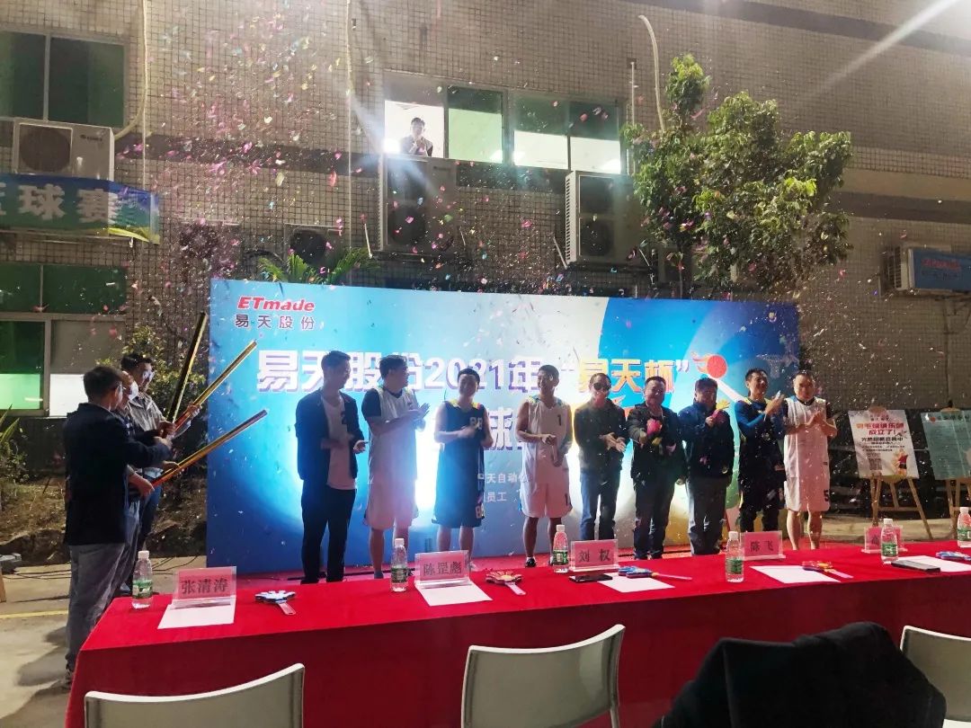 晚上在公司篮球场,公司总经理高军鹏携一众高管莅临开幕式现场并宣布篮球赛正式开始!